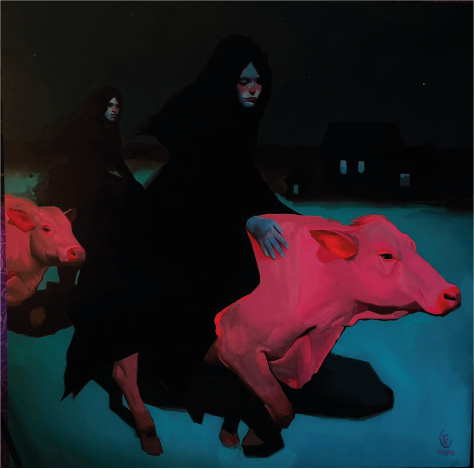 - Exploraciones identitarias y culturales: Orlando Villatoro yuxtapone figuras precolombinas con íconos pop como Mario Bros, creando choques temporales que retratan la identidad contemporánea.