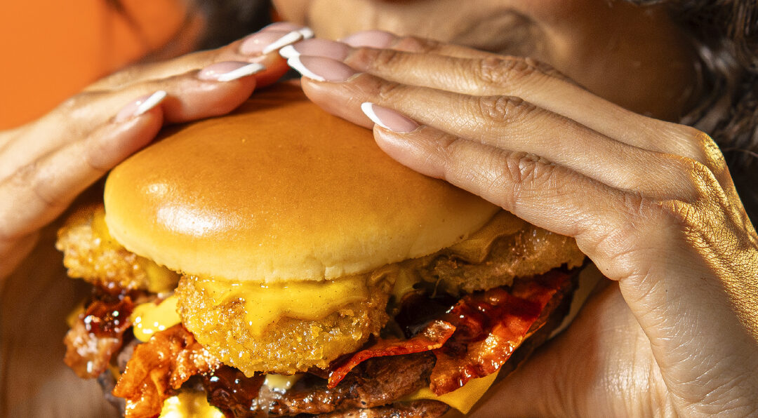 El Cheesy Ring King llega con una combinación que promete conquistar a todos: dos tortas de carne, queso americano, salsa barbacoa, tres aros de mozzarella, tocino crujiente y salsa mostaza miel, todo dentro de un suave pan de papa. Un festival de sabor que es, como dice la marca, crujiente, cheesy e irresistible.