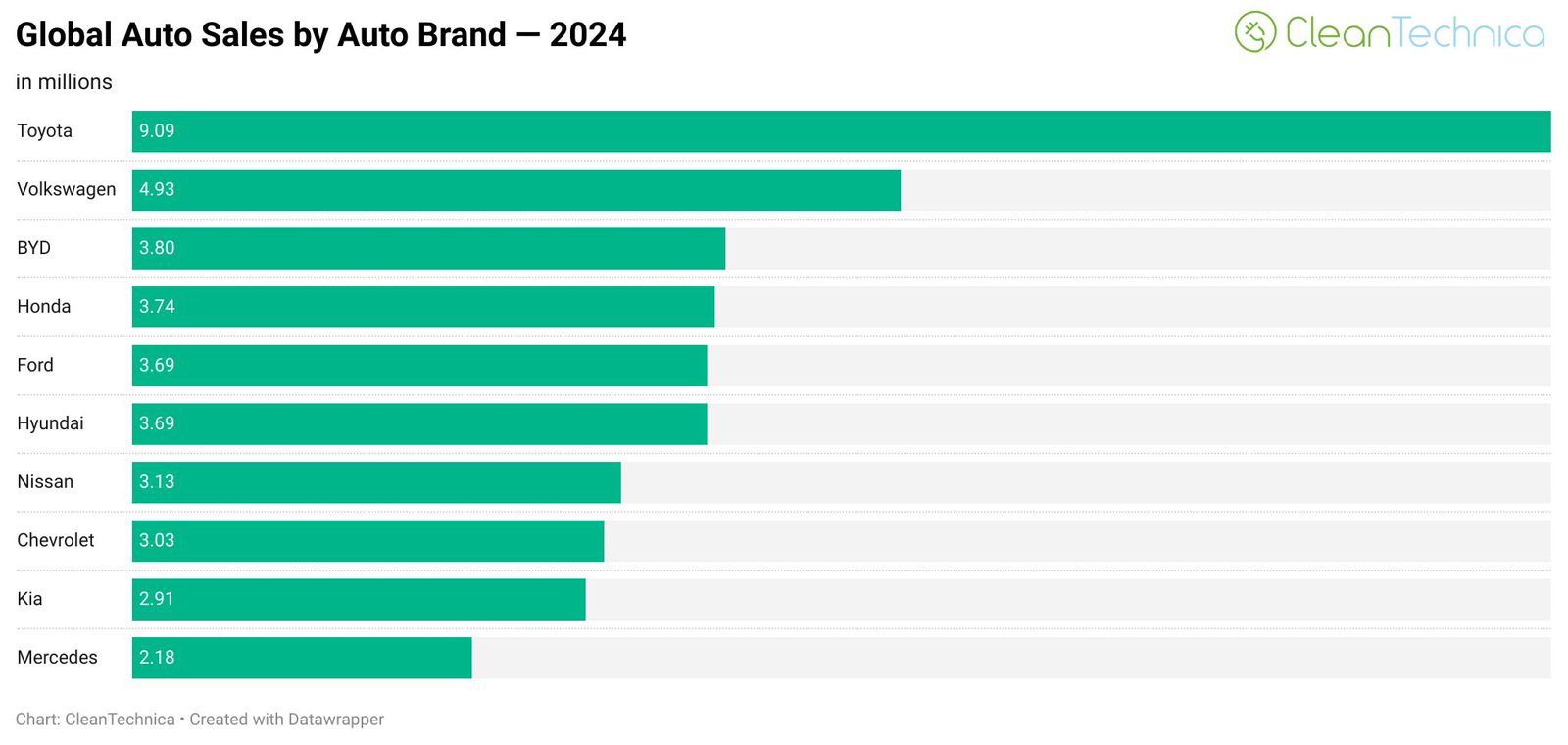 Según un análisis de CleanTechnica, BYD ha escalado seis posiciones en solo un año, pasando del noveno lugar en 2023 al tercer puesto en 2024, con un impresionante crecimiento del 41.6% en ventas globales. Este éxito resalta la confianza creciente de los consumidores en los vehículos eléctricos, desafiando las percepciones limitadas sobre su adopción. Lo más notable es que BYD se especializa exclusivamente en vehículos eléctricos y híbridos enchufables (PHEV), lo que la coloca como líder en la transición hacia una movilidad más sostenible, en contraste con otras automotrices que vieron disminuciones en sus ventas.