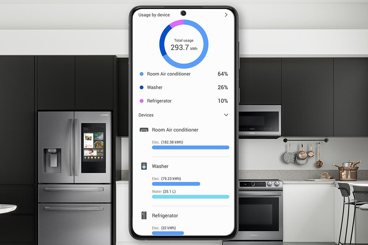Muchas lavadoras Samsung tienen conectividad Wi-Fi para que puedas conectarlas a la aplicación SmartThings en tu teléfono y usar la aplicación para recibir notificaciones, como por ejemplo que terminó su ciclo o que ya requiere mantenimiento. Además puedes seleccionar ciclos de lavado, tipo de ropa y tiempo de secado, entre muchas otras tareas. La nueva lavadora-secadora todo en uno de Samsung, Bespoke AI Laundry Combo, además utiliza la función SmartThings Energy para ayudarte a monitorear y reducir fácilmente el uso de energía.