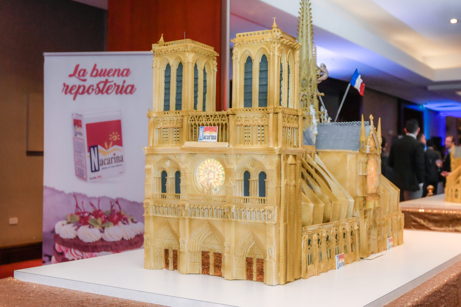Durante el evento se rindió homenaje a la emblemática catedral francesa, un símbolo de la arquitectura gótica y la historia cultural de Francia, mediante una sorprendente interpretación culinaria de la misma. Un pastel réplica realizado por el equipo de maestros pasteleros de la marca costarricense de harina de trigo NACARINA, quienes rindieron tributo al arte y la historia a través de su destreza en la repostería.