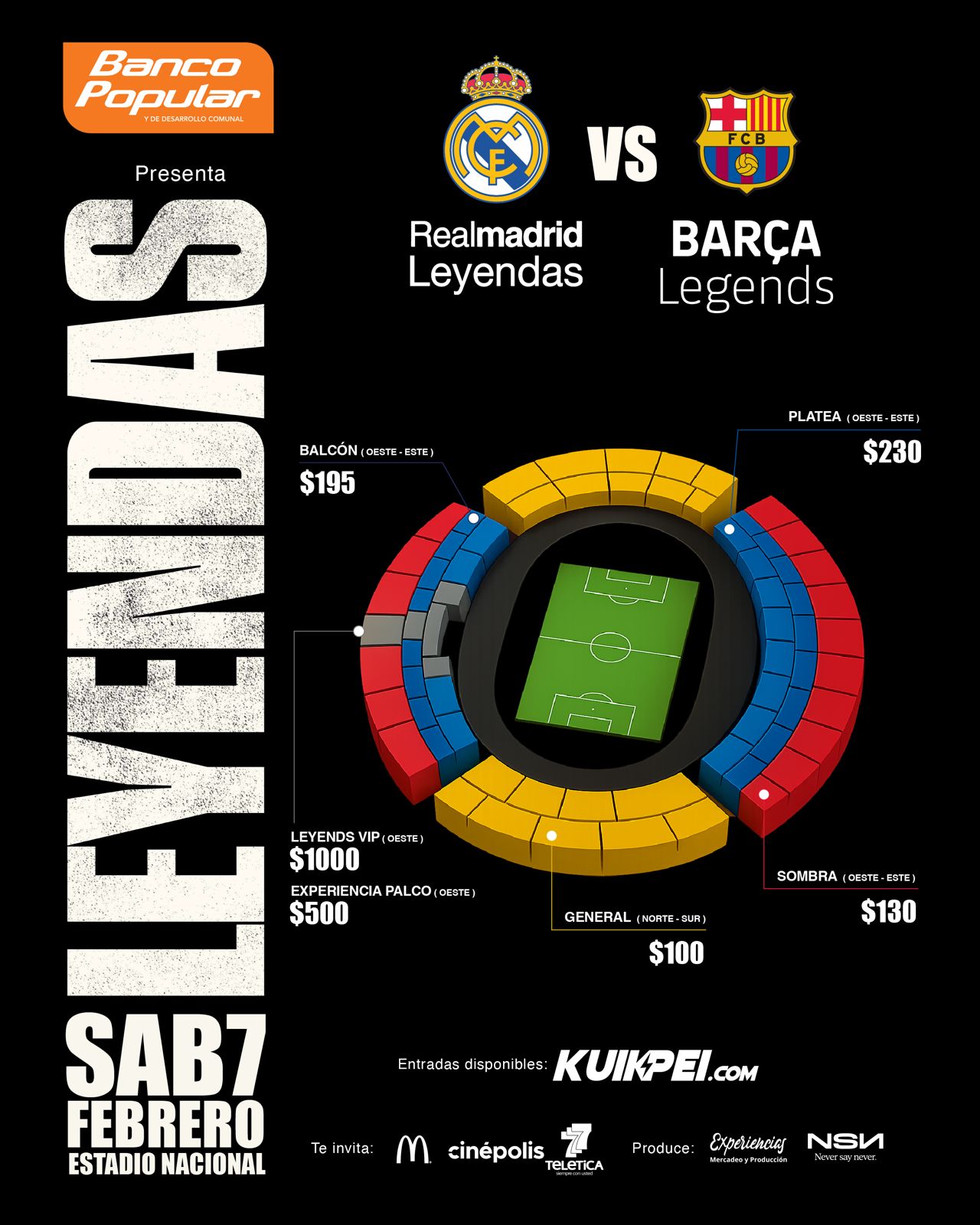 El evento, organizado por Experiencias MKP, llega al país como una experiencia deportiva y de entretenimiento sin precedentes, gracias al respaldo del Banco Popular y de Desarrollo Comunal como patrocinador oficial. La iniciativa busca reunir a familias y aficionados de todas las generaciones alrededor de la nostalgia y la pasión por el fútbol.