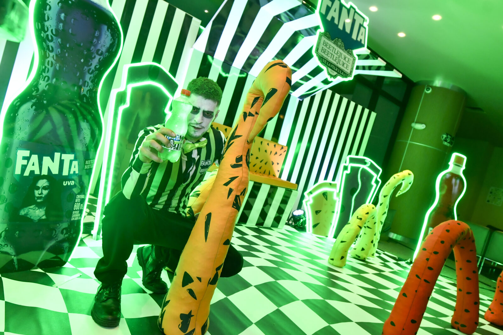 Fanta® invoca a Beetlejuice con su propio sabor de edición limitada, ‘Fanta® Beetlejuice’. El empaque -diseñado con el característico estilo de rayas blancas y negras-, está ilustrado por el propio Beetlejuice, con la interpretación de Michael Keaton. Esta propuesta única estará disponible por tiempo limitado, con una invitación a los consumidores para experimentar un sabor fuera de este mundo.