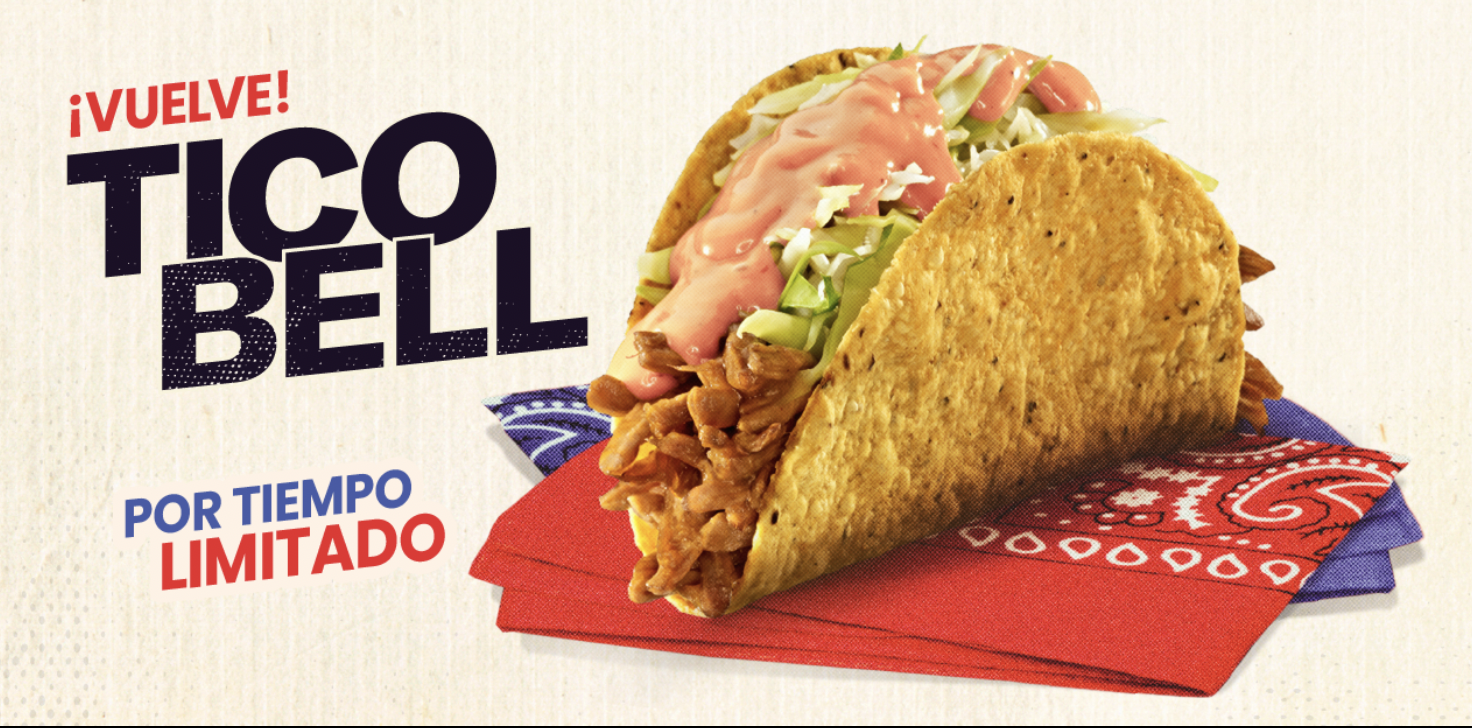 “En el marco de la celebración las fiestas patrias, estamos muy felices de traer de vuelta uno de los productos preferidos y más aclamados por los Taco Lovers: el Tico Bell. Muchos lo recordarán, pues nació en el año 1995. Ahora, este icónico de la marca regresa con mucho más sabor y dispuesto a complacer a los más ticos. Invitamos a nuestros consumidores a que vayan a probarlo a su Taco Bell favorito”, comentó Mónica Quesada, gerente de mercadeo de Taco Bell® Costa Rica.