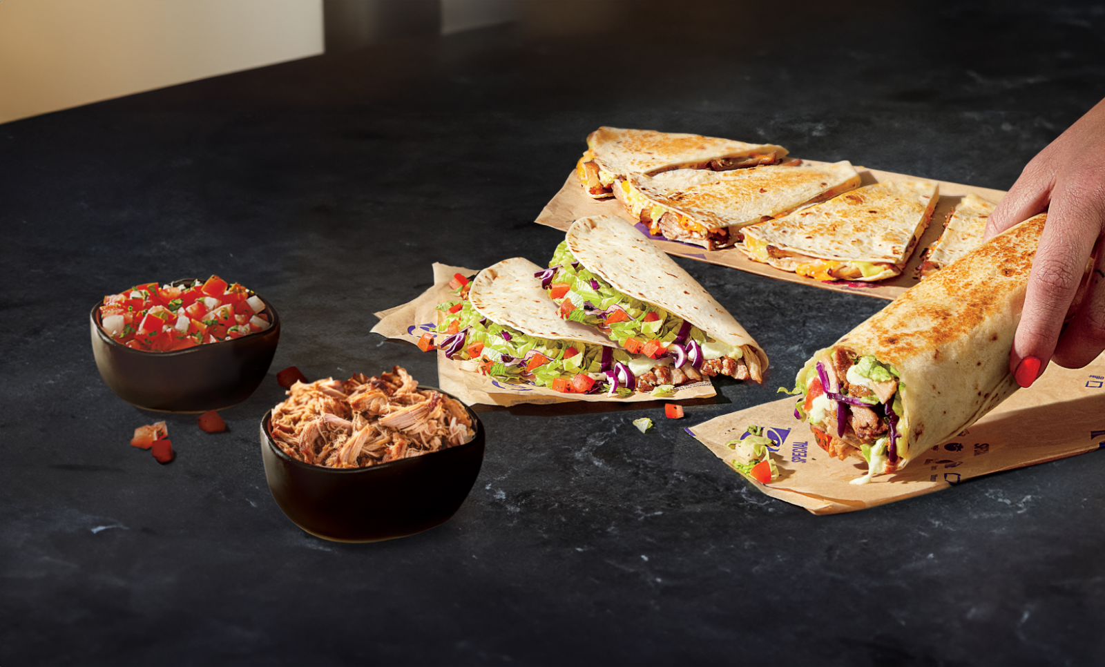 Las Carnitas de Cerdo son ideales para acompañar esas esperadas cenas y esos momentos navideños de celebración en los últimos meses del año, ya que se pueden disfrutar en tres presentaciones, como lo es el Taco Carnitas que se compone de fresca lechuga, pico de gallo, repollo morado, salsa Creamy Verde y la suave carne de cerdo envueltos en una caliente tortilla de harina; mientras que la Carnitas Quesadilla contiene la misma proteína, la mezcla de tres tipos de quesos derretidos con la salsa Creamy Verde y la clásica tortilla de harina que fusiona todos los sabores.
