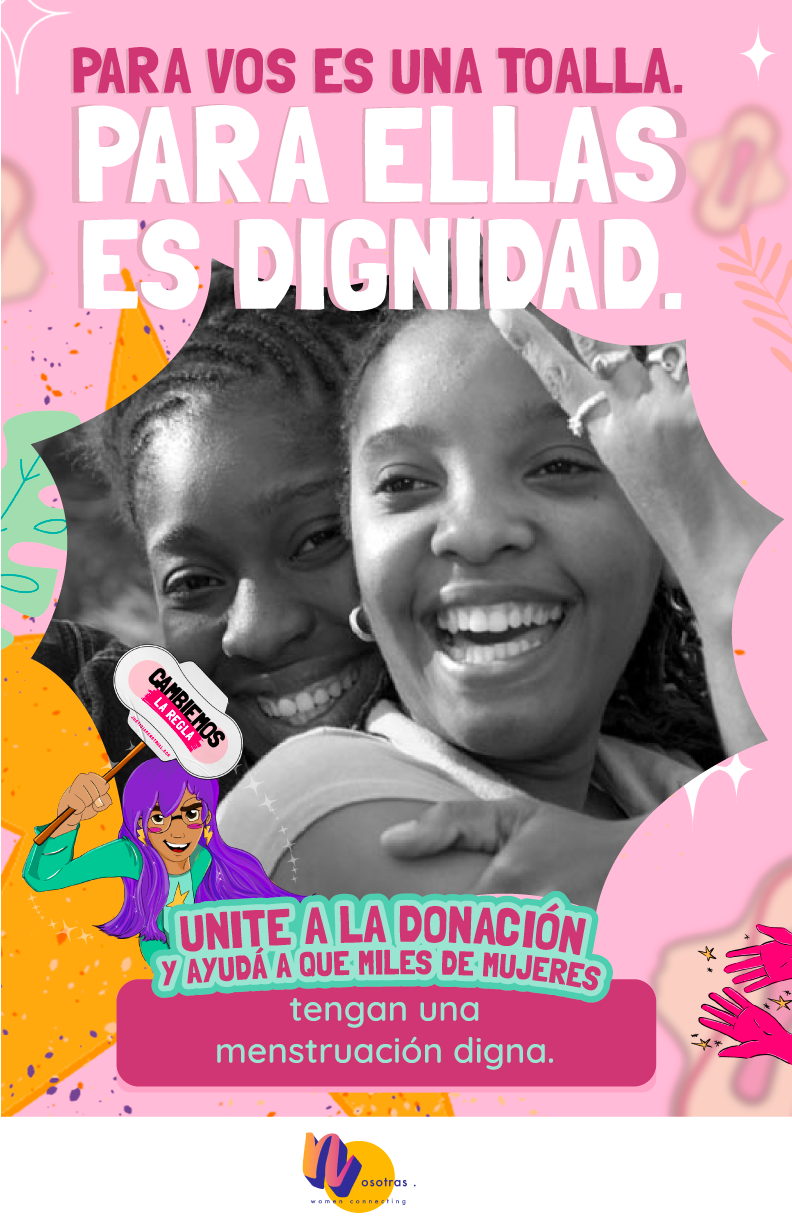 - Donaciones pueden ser toallas sanitarias, calzones menstruales, tampones y copas