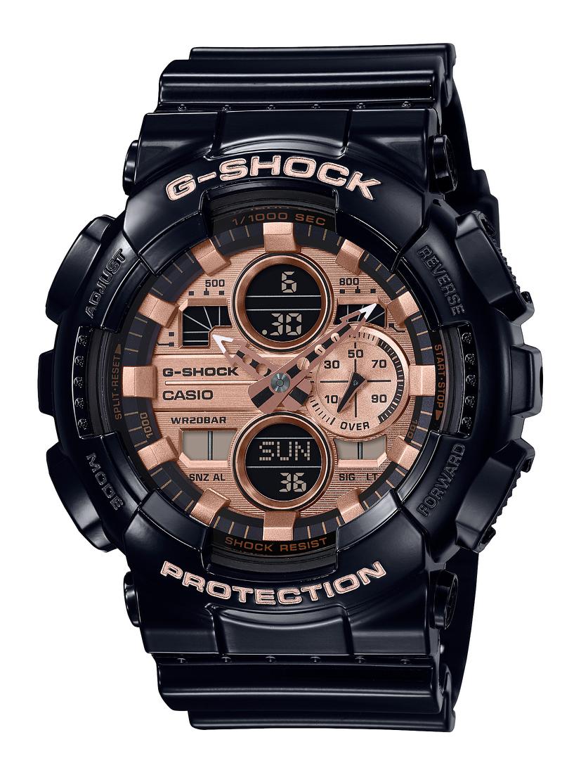 GA-140GB-1A2: Este reloj, con su impresionante acabado en negro brillante y dorado, es la definición de elegancia moderna. Su diseño combina a la perfección con el estilo urbano invernal de Costa Rica, ofreciendo un toque de glamour a la resistencia característica de G-SHOCK.
