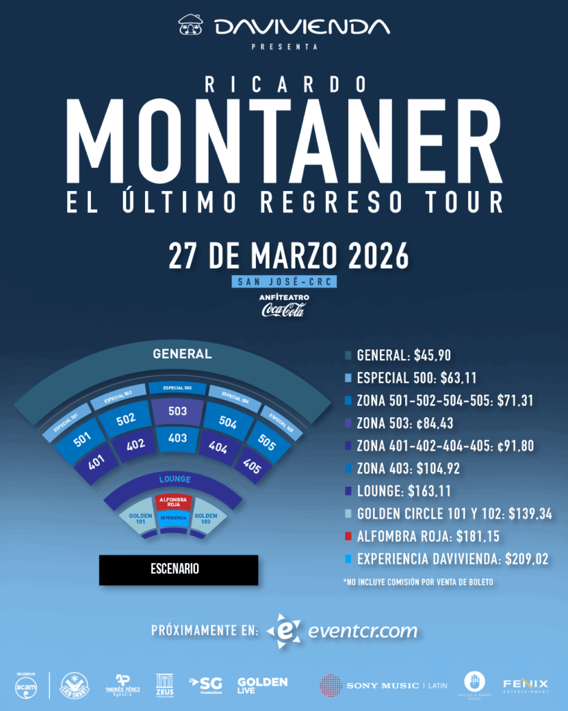Los precios de las entradas van desde los $45,90 en Zona General hasta los $209,02 en Experiencia Davivienda (sin incluir cargos por servicio). Con esta gira, Montaner reafirma su lugar como uno de los grandes intérpretes de la música latina y promete un reencuentro lleno de emoción, nostalgia y gratitud.