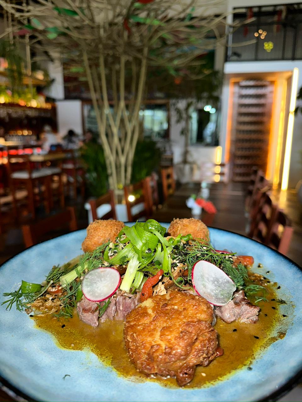 El concepto llega desde Houston, de la mano del chef estadounidense Bruce Molzan y la chef costarricense Mariela Gamboa. La propuesta fusiona sabores caribeños, asiáticos e indios usando productos frescos y locales. Entre los favoritos del menú destacan el pargo rojo al pistacho, el ramen de mariscos, el pollo relleno de espinacas, las pizzas artesanales y una selección de postres para cerrar con broche de oro.